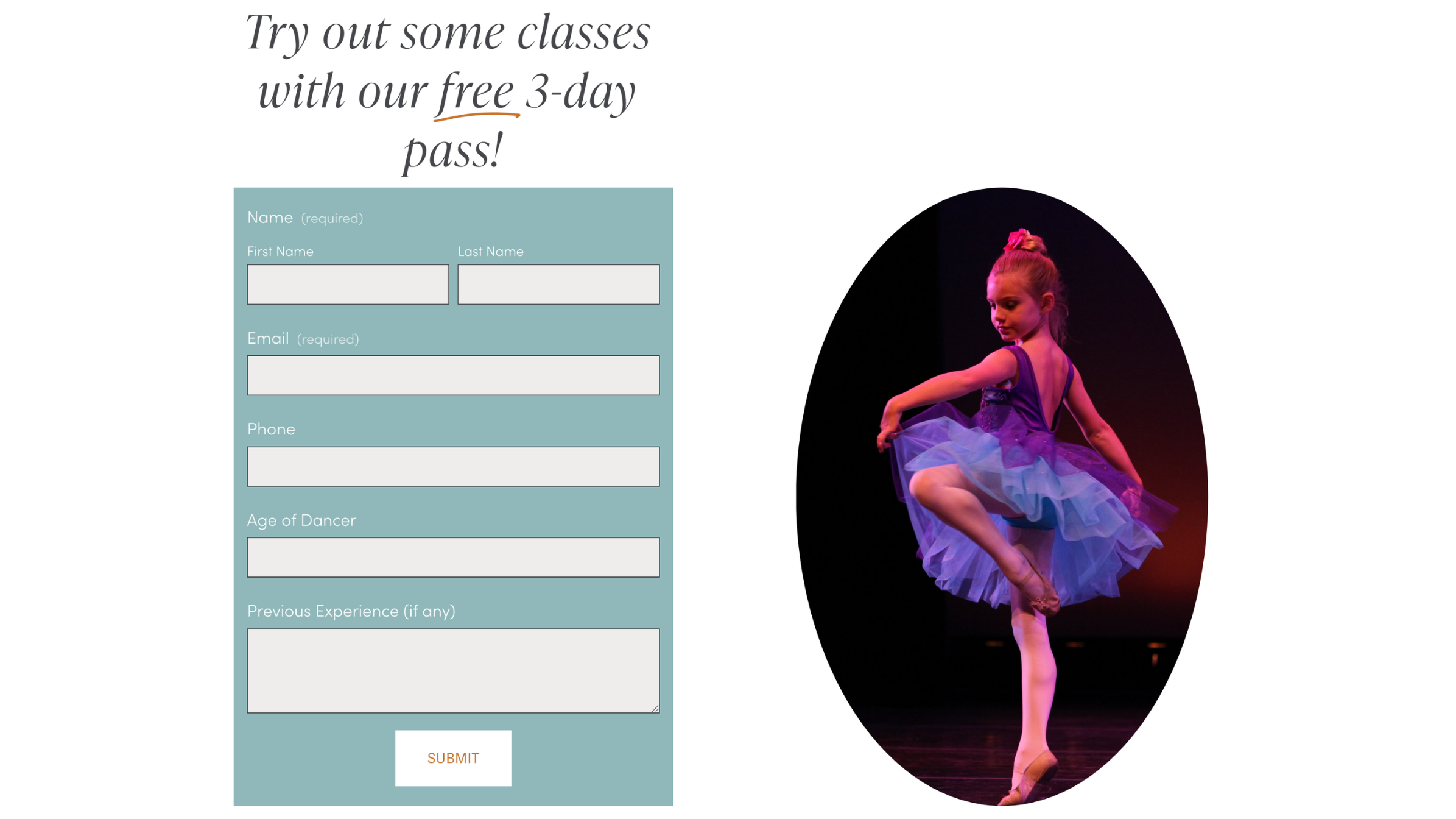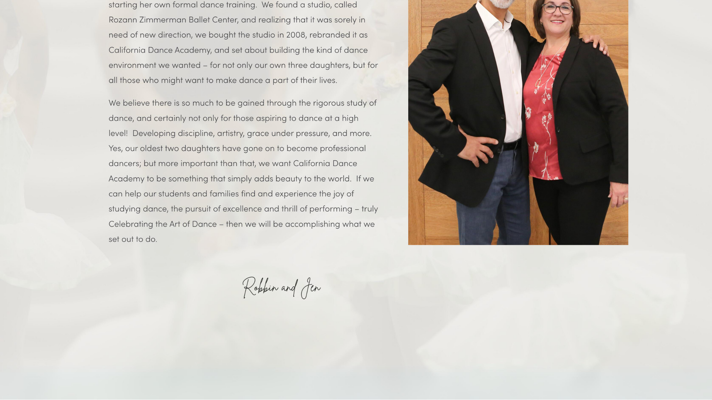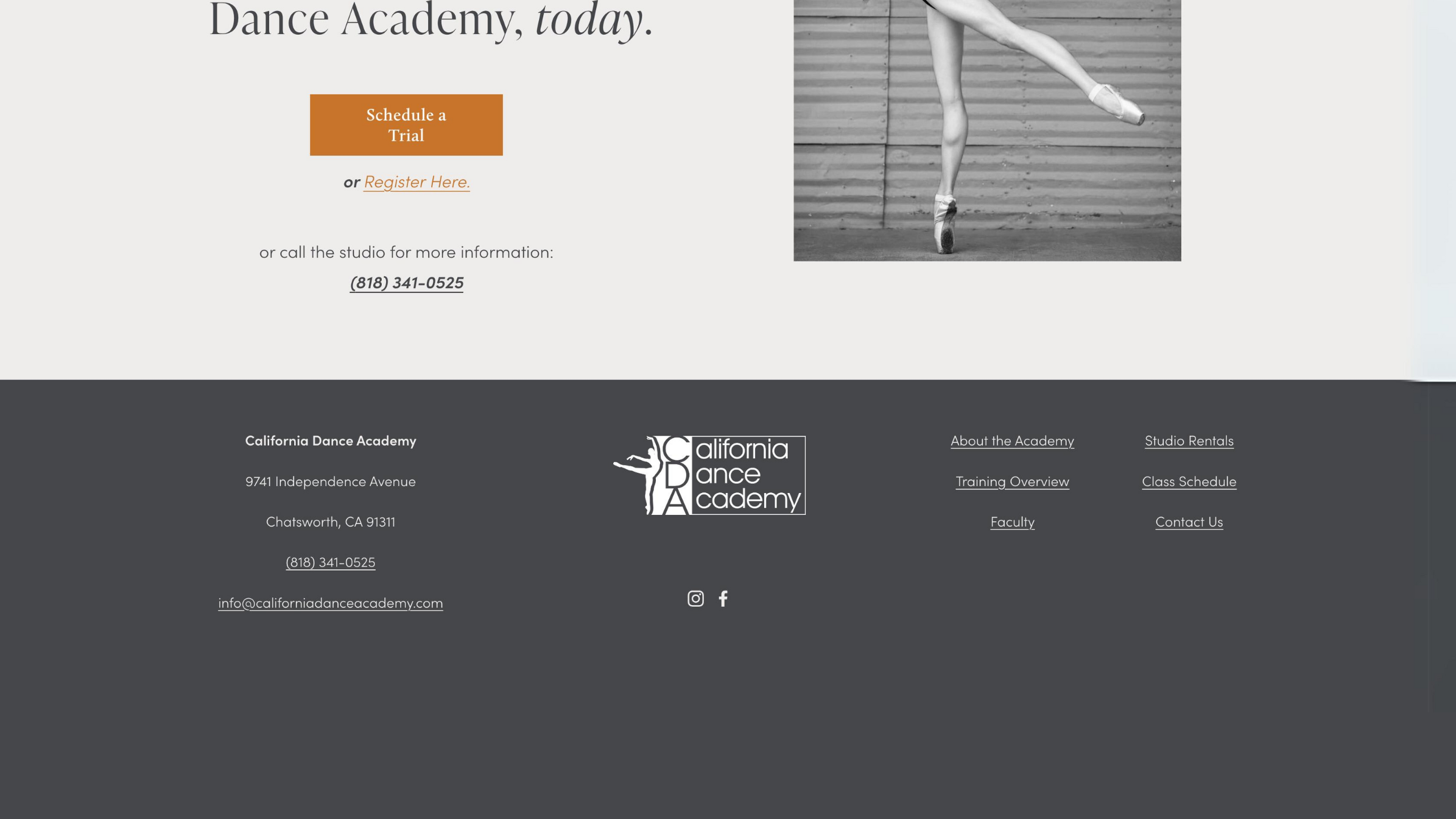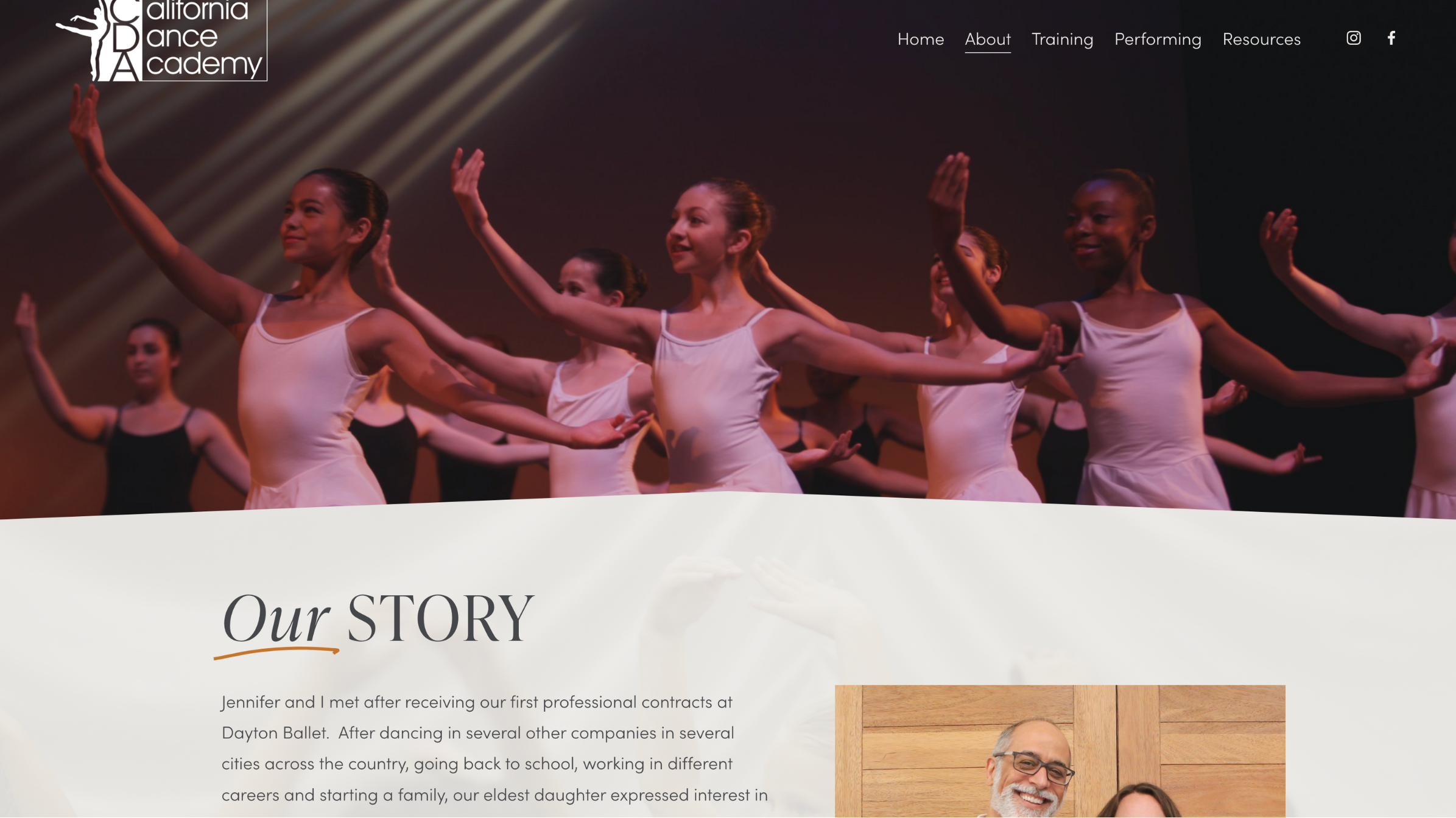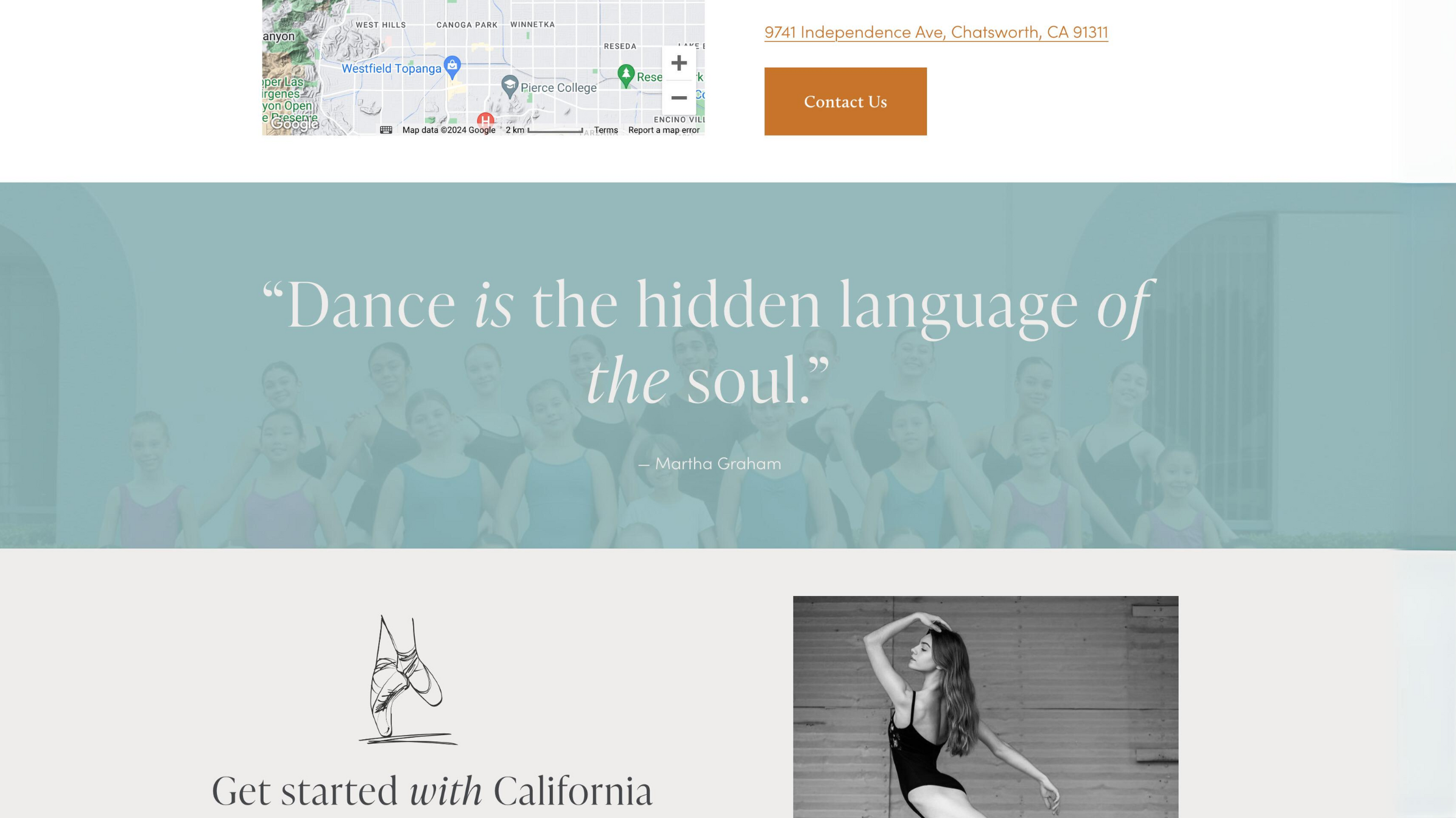 California Dance Academy is a premier dance studio in the greater Los Angeles area offering some of the best training and highly qualified instructors in the dance world. When working with this business we discovered the need for an elegant and classic site with pops of colors that truly showcases the prestige of the studio, while also educating site visitors on the process of signing up and discovering which level and tracks are right for their child.