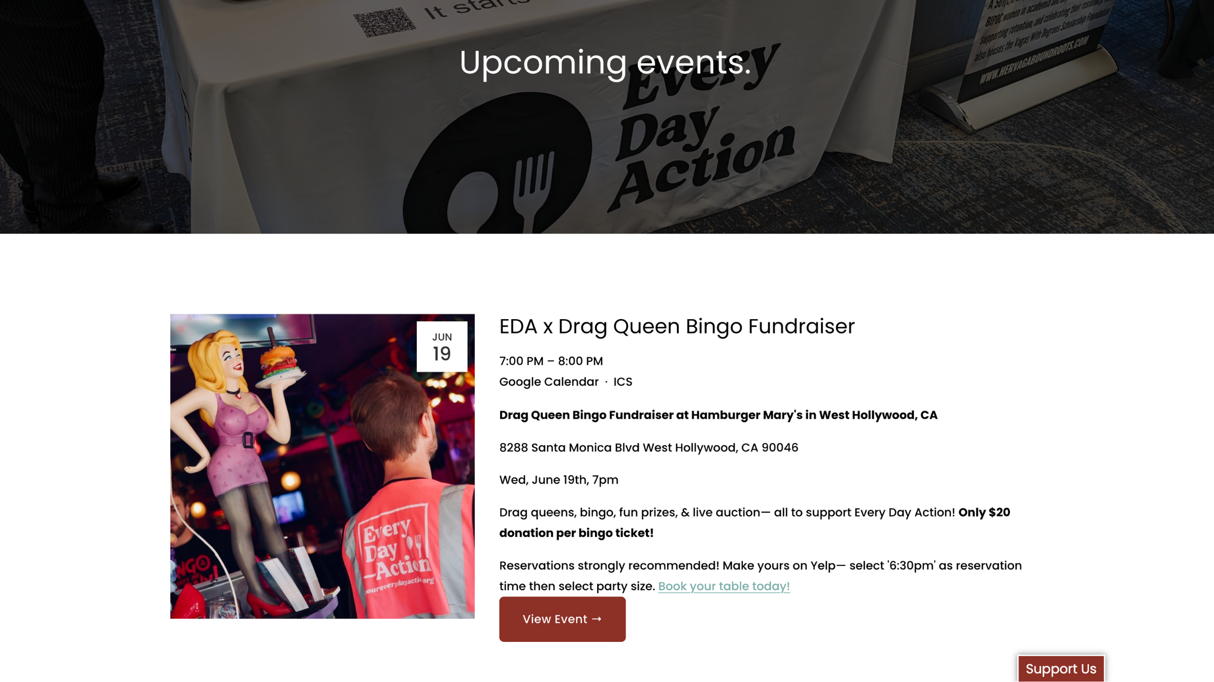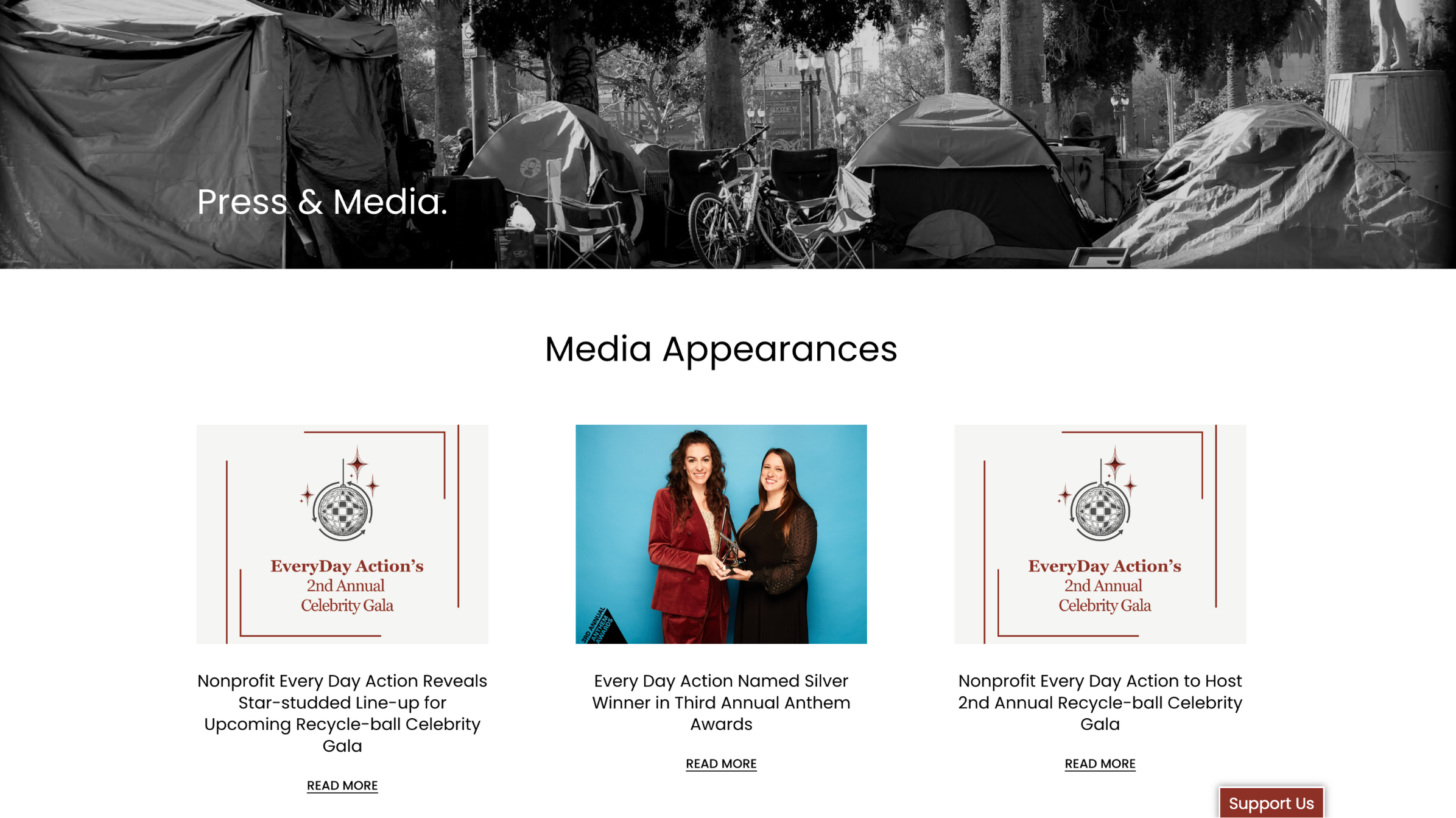 Every Day Action required a robust website that includes every detail about the creation, mission and execution of their non-profit work. From an integrated donation software to a full merchandise shop, EDA’s website has been an enormous part of raising funds, procuring donations, selling tickets to events and helping those that need it most.